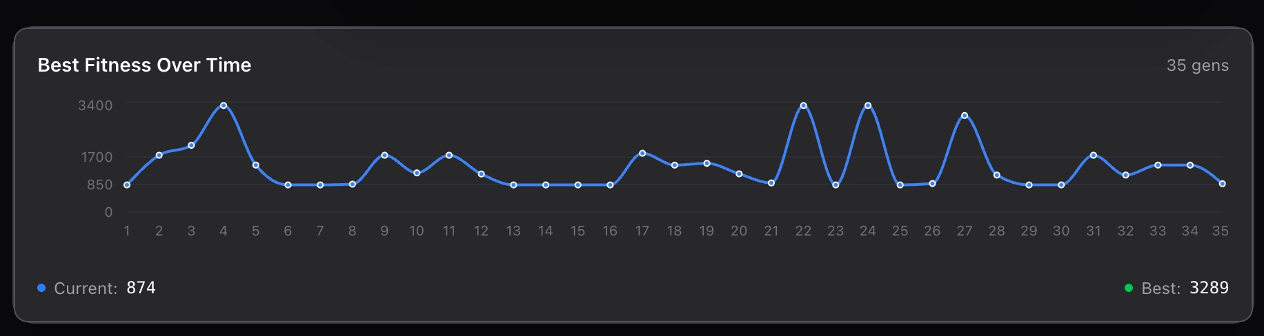- Live Analytics: Fitness trends, generation stats, best agent playback