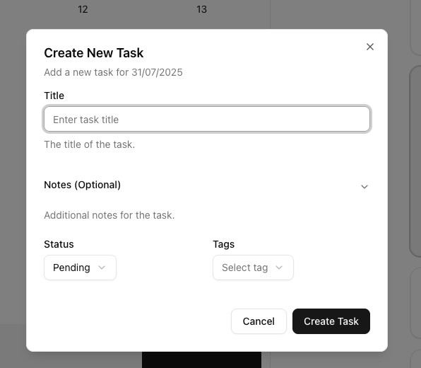 For each day, I can quickly add tasks with the following details: